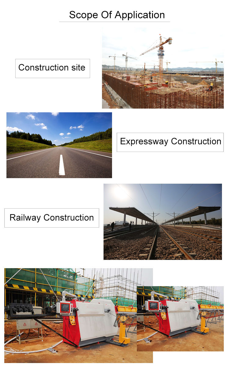 Mesin mlengkung cnc saka tegangan feed, descaling, straightening extension, mbungkus mbentuk, ngitung, ngilangi macem-macem proses integrasi, bisa langsung ngasilake macem-macem ukuran lan ukuran stirrups, kanthi lengkap syarat desain.